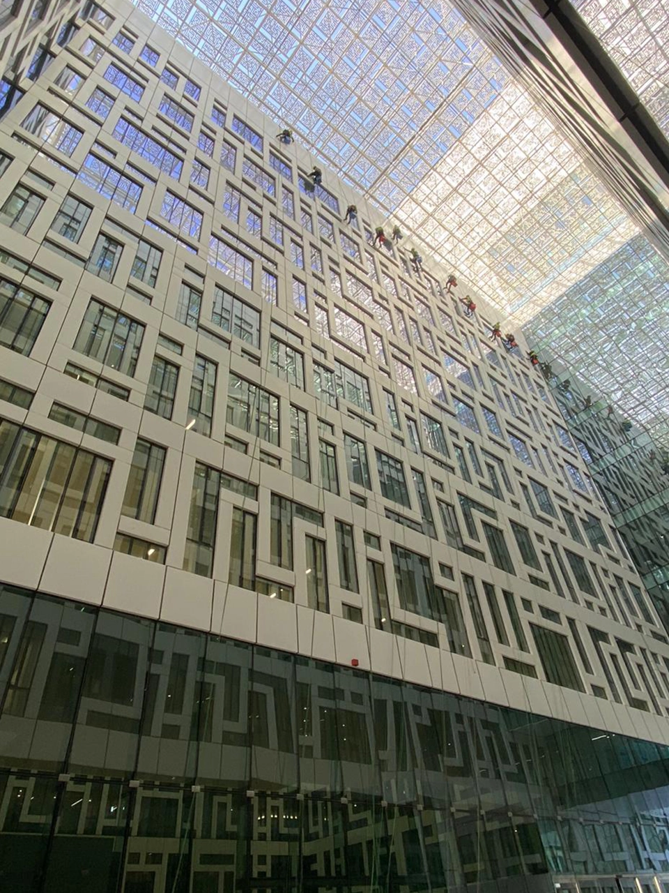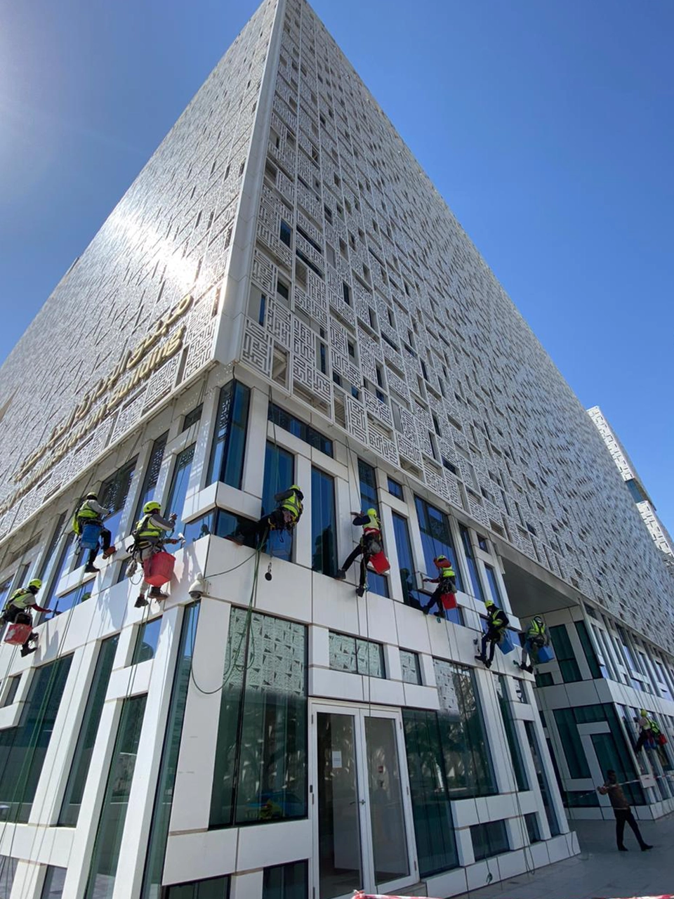 أهم 5 نصائح لتنظيف واجهات المباني الزجاجية في الكويت | سبايدرز تاور.