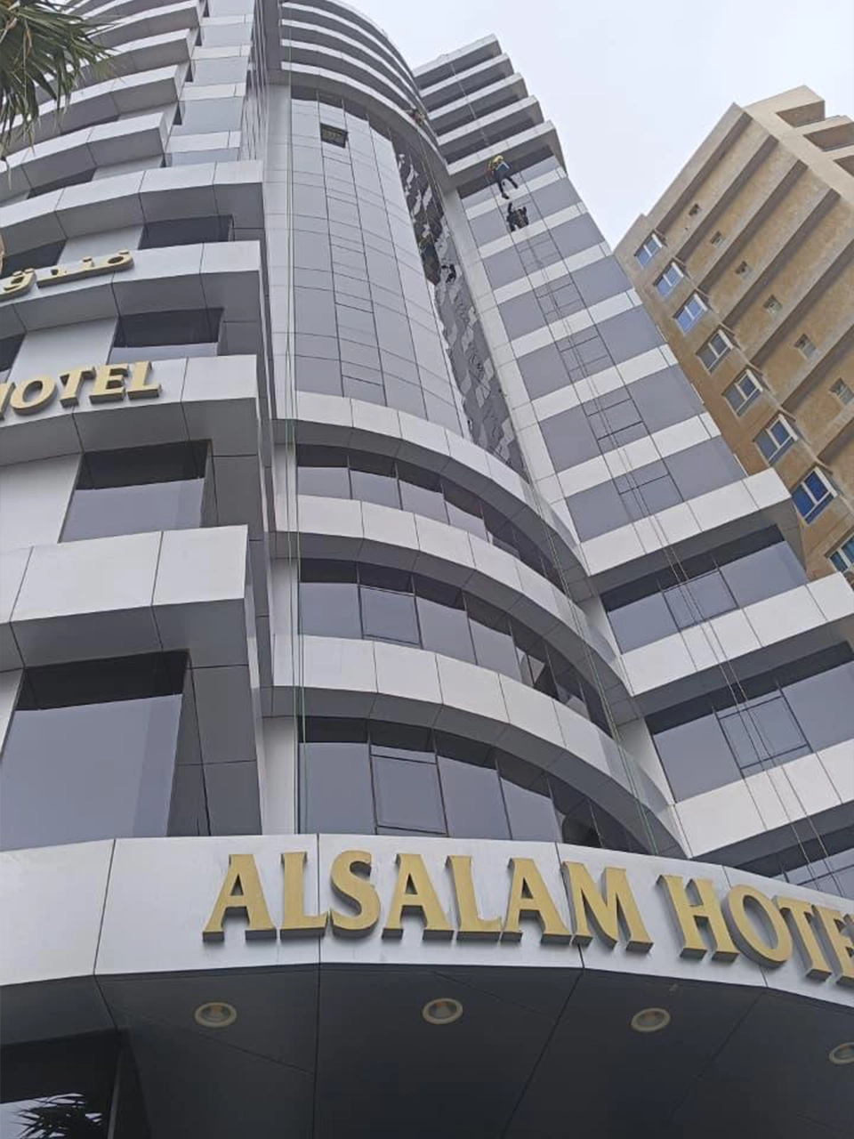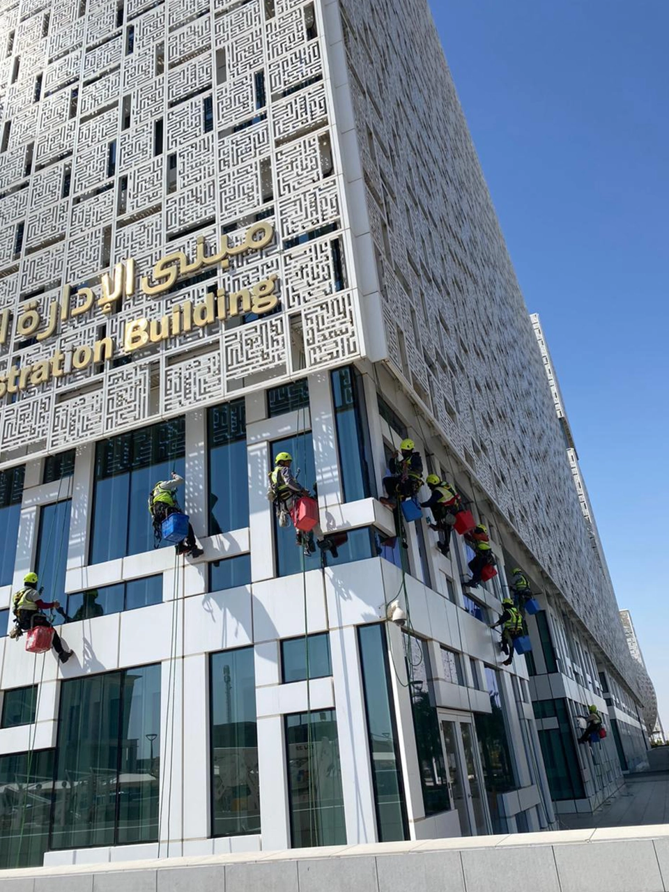 اكتشف كيف تحافظ على بريق واجهة مبناك في ظل مناخ الكويت الصحراوي. نصائح احترافية من خبراء سبايدرز تاور لتنظيف الزجاج والرخام بأمان.